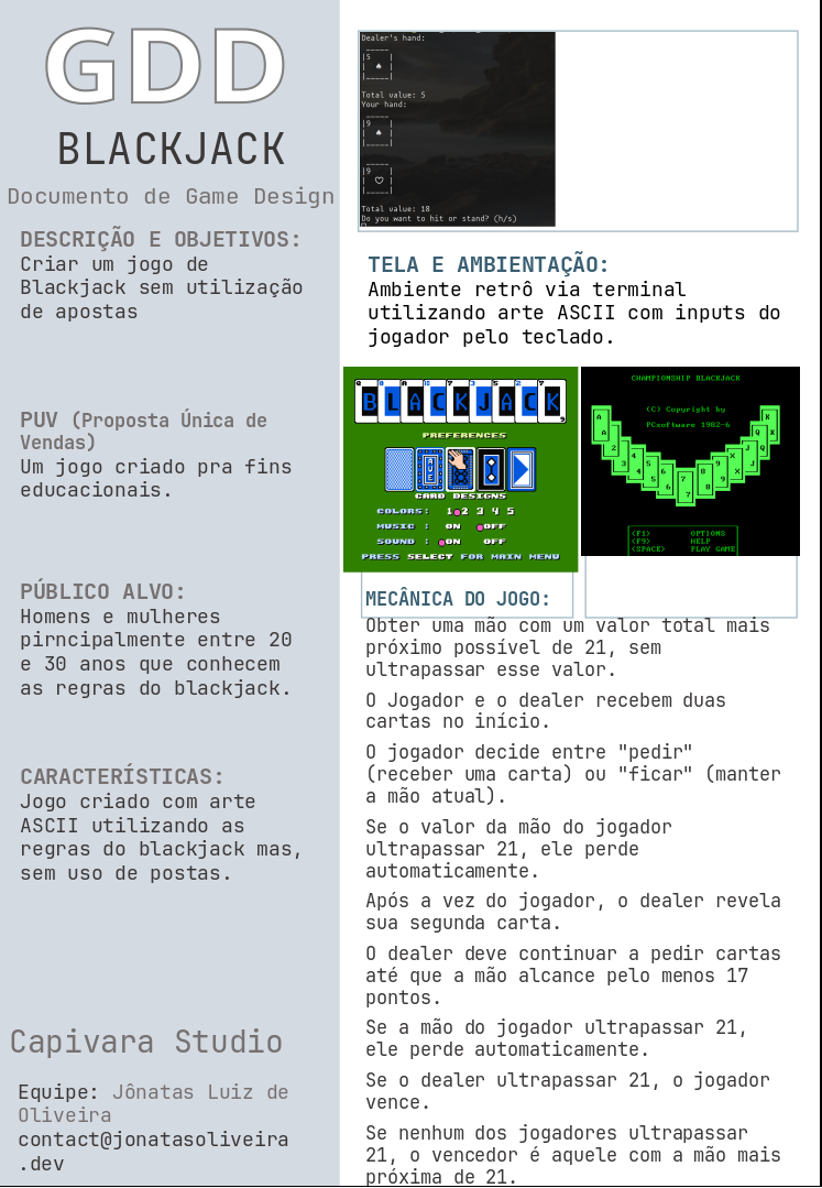 Obter uma mão com um valor total mais próximo possível de 21, sem ultrapassar esse valor. O Jogador e o dealer recebem duas cartas no início. O jogador decide entre "pedir" (receber uma carta) ou "ficar" (manter a mão atual). Se o valor da mão do jogador ultrapassar 21, ele perde automaticamente. Após a vez do jogador, o dealer revela sua segunda carta. O dealer deve continuar a pedir cartas até que a mão alcance pelo menos 17 pontos. Se a mão do jogador ultrapassar 21, ele perde automaticamente. Se o dealer ultrapassar 21, o jogador vence. Se nenhum dos jogadores ultrapassar 21, o vencedor é aquele com a mão mais próxima de 21.
