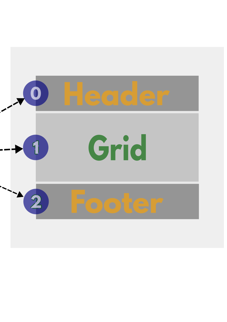 Veja na imagem abaixo vamos separar nosso layout do jogo em 3 partes ou 3 chunks uma pro header, outra pro footer e finalmente o meio pro Grid.
